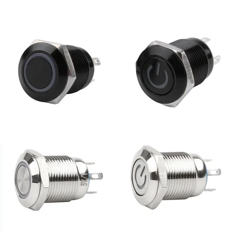 12mm Waterproof Oxidized Black Metal Button Switch with LED Lamp Momentary Latching PC Power Switch 3V 5V 6V 12V 24V 220V
