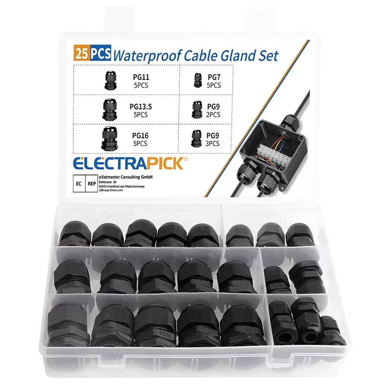 25pcs Waterproof Cable Gland Nylon Joints Plastic Black Cable Glands Connector Cable Joint Combination PG7 PG9 PG11 PG13.5 PG16