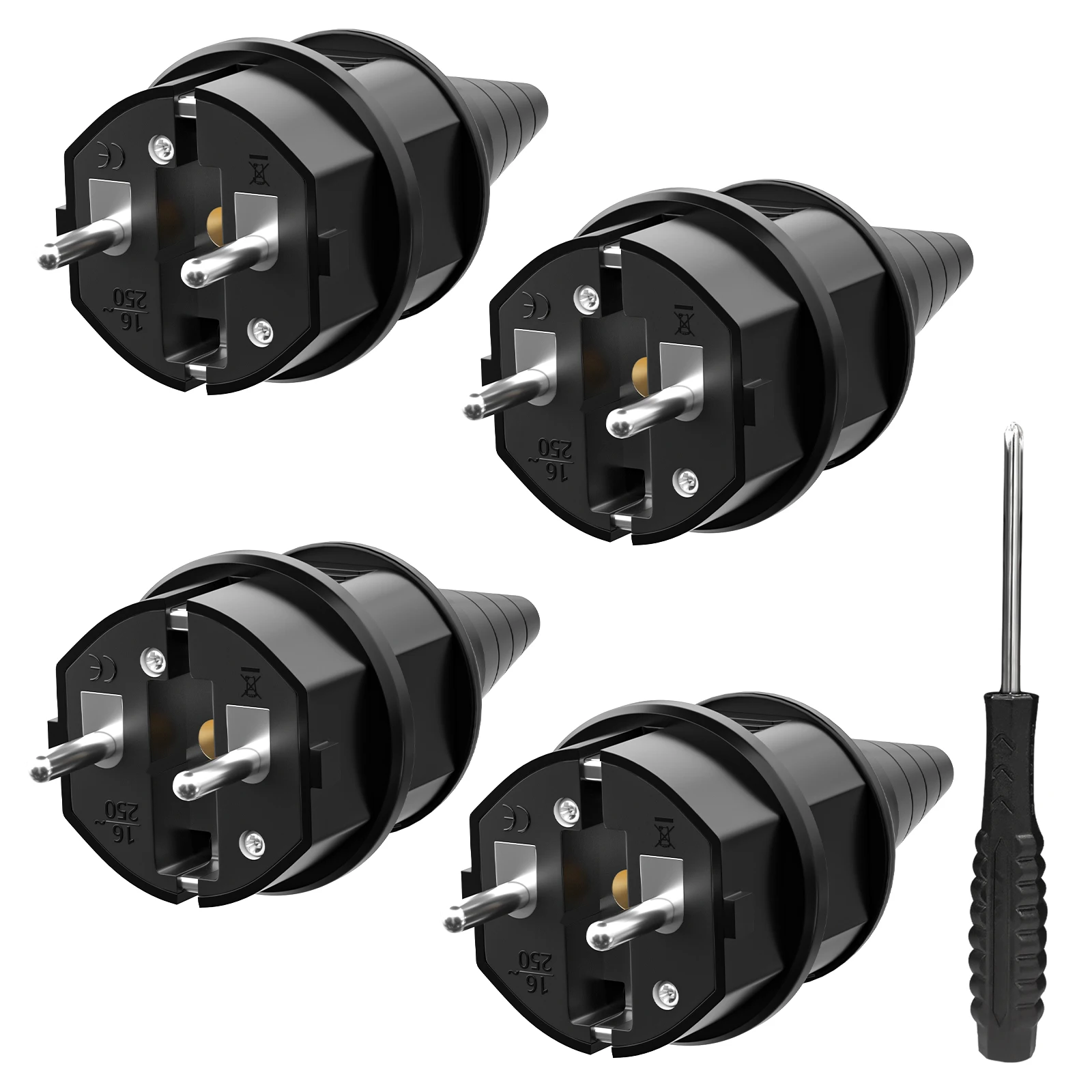 3/4 Pack Female Male Connector Electrical Plug Rewireable Socket France Korea German EU Schuko Power Cord Wired Waterproof