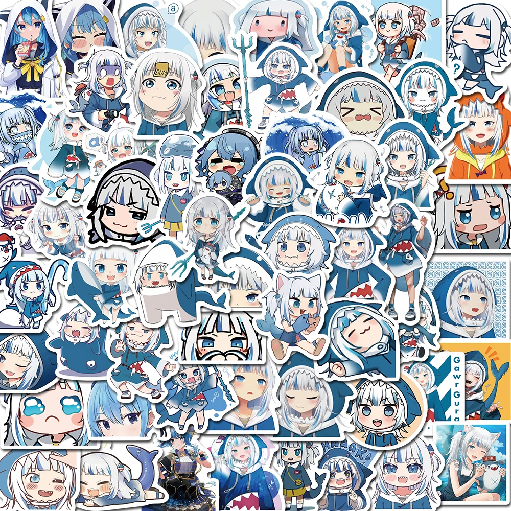 10/60pcs Kawaii Anime Girl Gawr Gura Stickers Cartoon Cute Shark Waterproof Decals Skateboard Sticker For Laptop Suitcase Guitar  Read more