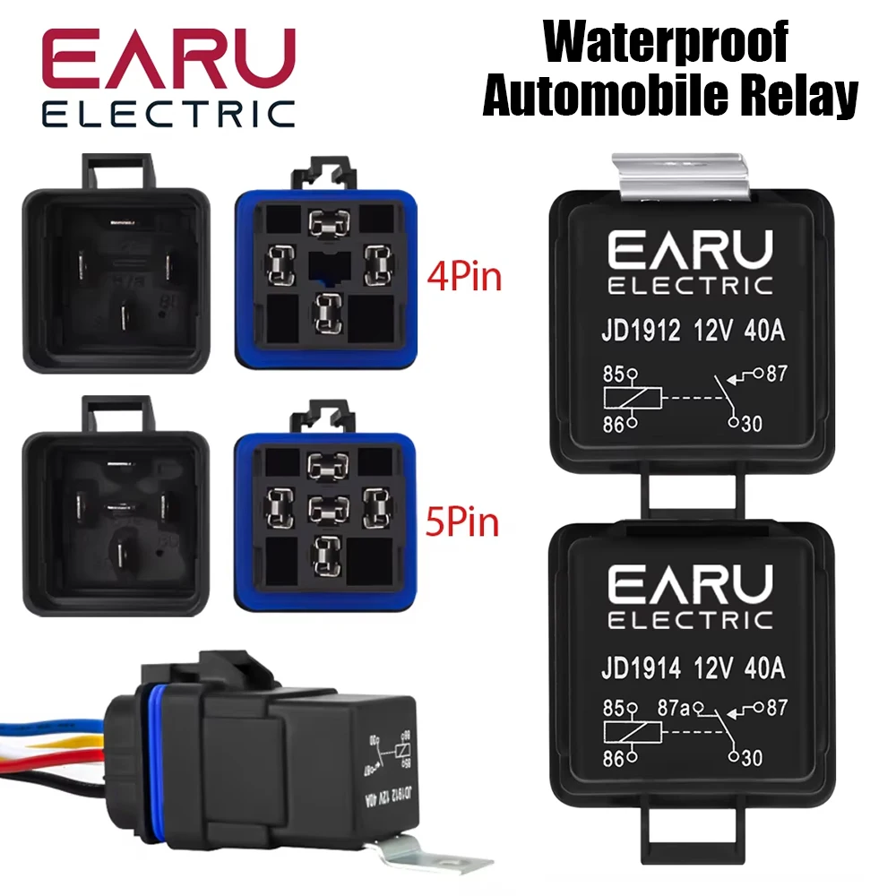 DC12V Car Auto Automobile Relay Sealed Waterproof Integrated Wired 40A 5Pin 4pin Auto Relay + Holder With 105mm Length Wires