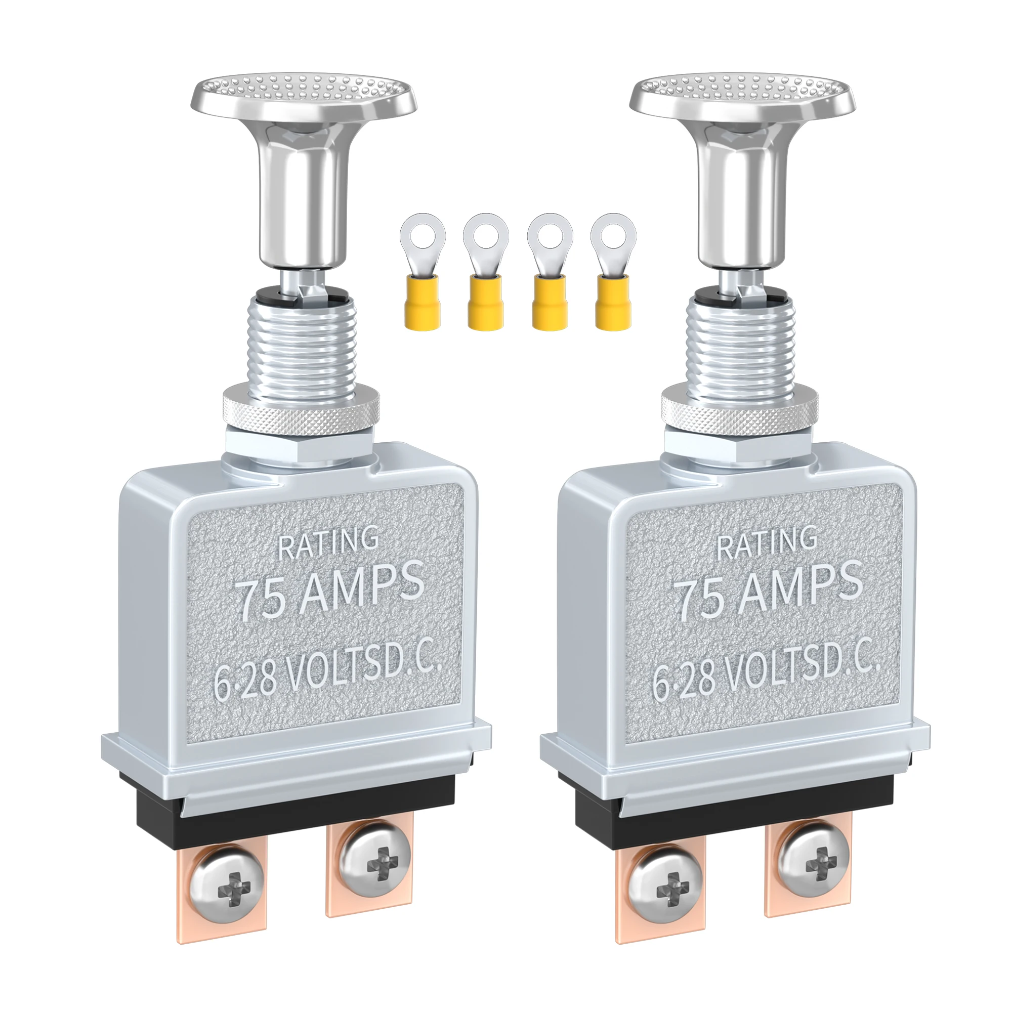 2PCS Push Pull Switch Heavy Duty 75 Amp Pull Switch 6-28V DC 2 Position Spst On/Off for Automotive, Trucks, Off-Road
