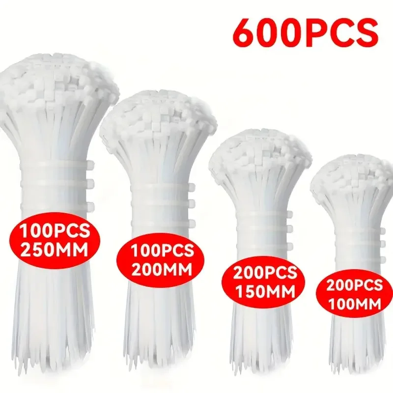 600pcs Various Sizes White Zipper Ties 4/6/8/10 Inch Transparent Plastic Cable Ties Heavy-Duty Nylon Cable Management Ties  Read more