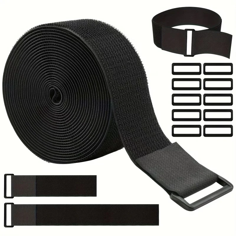 Cable Straps Heavy Duty With Buckles Black Hook And Loop Straps Reusable Cable Ties For Organizer Or Storage 5CM Wide
