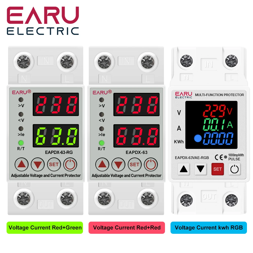 40A 63A 230V Din Rail Adjustable Over Voltage And Under Voltage Protective Device Protector Relay Over Current Protection Limit