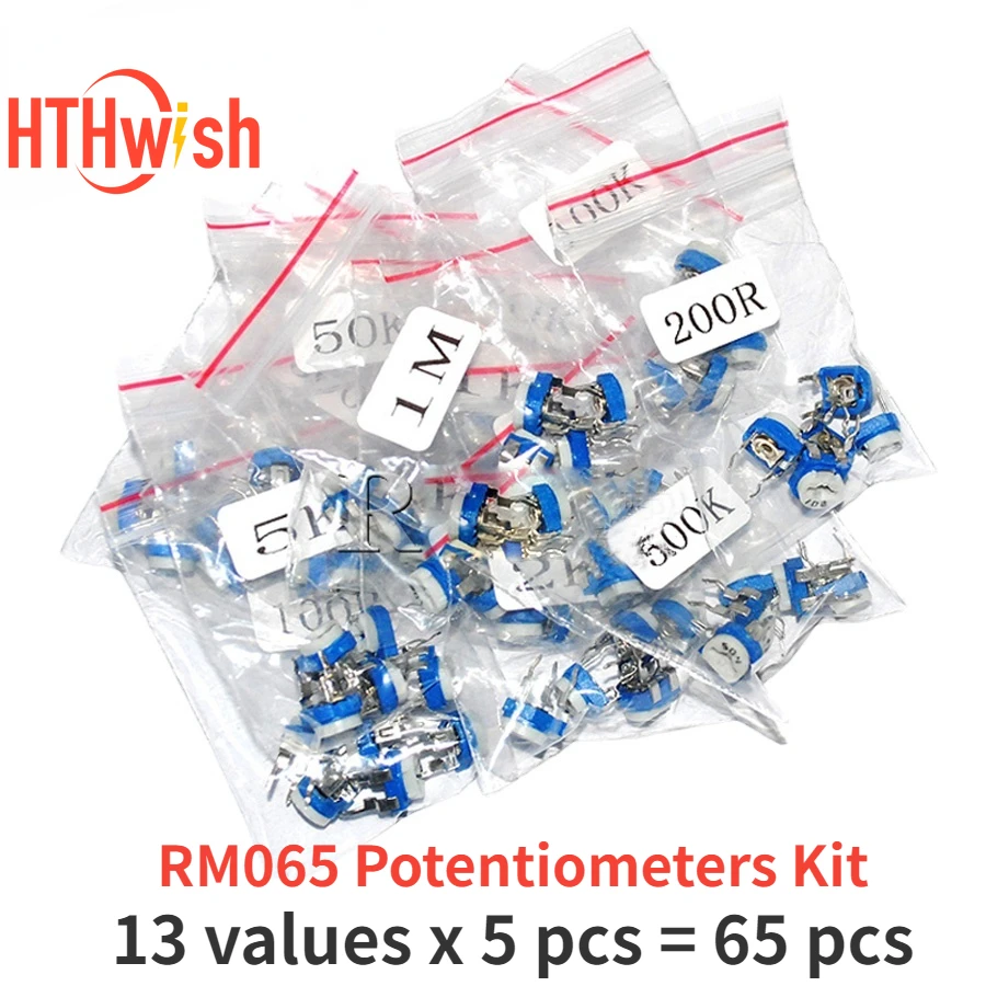 65PCS Potentiometer Set RM065 Adjustable Resistor 100 200 500 1K 2K 5K 10K 20K 50K 100K 200K 500K 1M Ohm Potentiometers Kit
