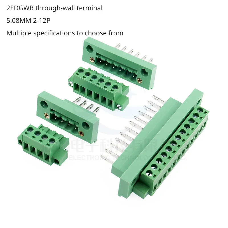 Pluggable through-wall green terminal block 2EDGWB-5.08MM with screw fixed panel 2P3P4P-12P