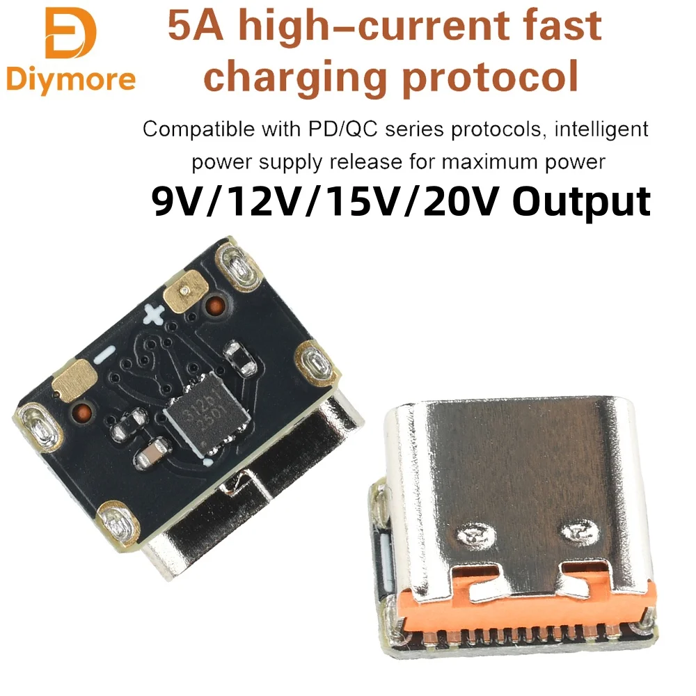 PD3.0 PD3.1 QC2.0 Mini PD to DC Deceiver Fast Charging Module DC 9V/12V/15V/20V Fixed Voltage Output Voltage Trigger Type C