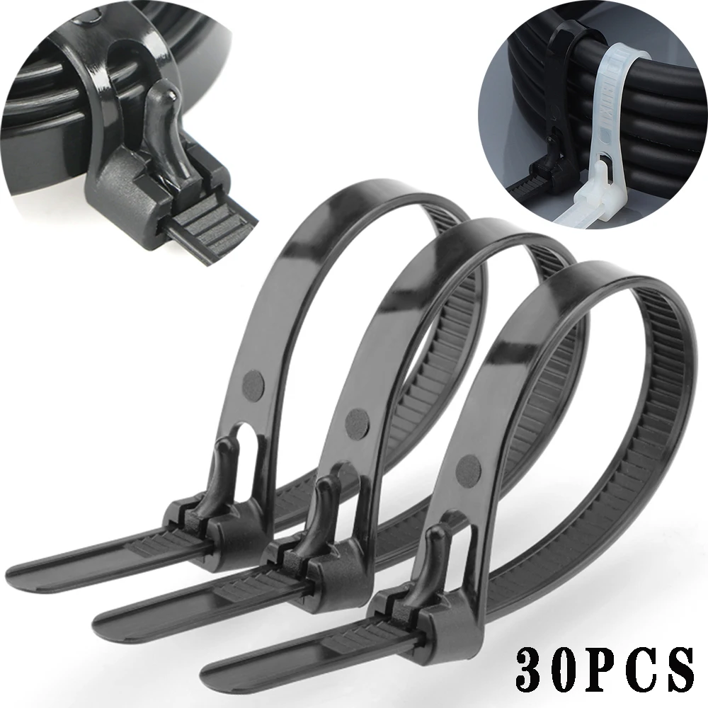 30PCS retractable nylon cable tie, reusable self-locking plastic fixed black nylon cable tie, packaging plastic zipper cable tie