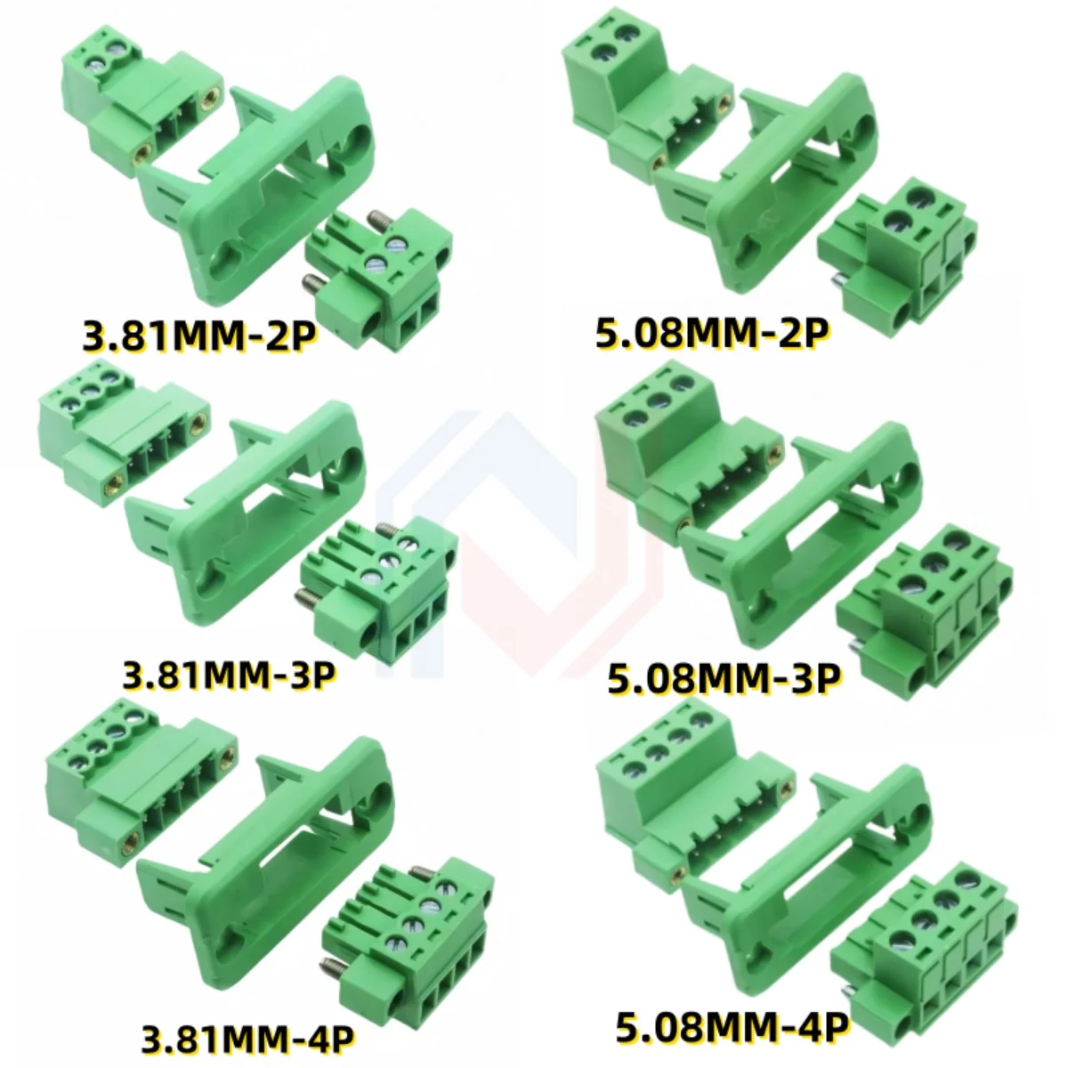 2sets 15EDGWC 3.81mm 5.08mm Terminal Block Through-wall Welding-free Plug-in Type 2P/3P-16P 15EDG 3.81mm with Flange Fixed Panel