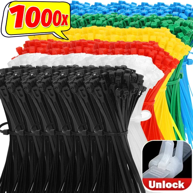 100-1000pcs Reusable Nylon Cable Ties Releasable Self-locking Loose Slipknot Cables Ties Wire Fixed Strap Zip Ties Binding