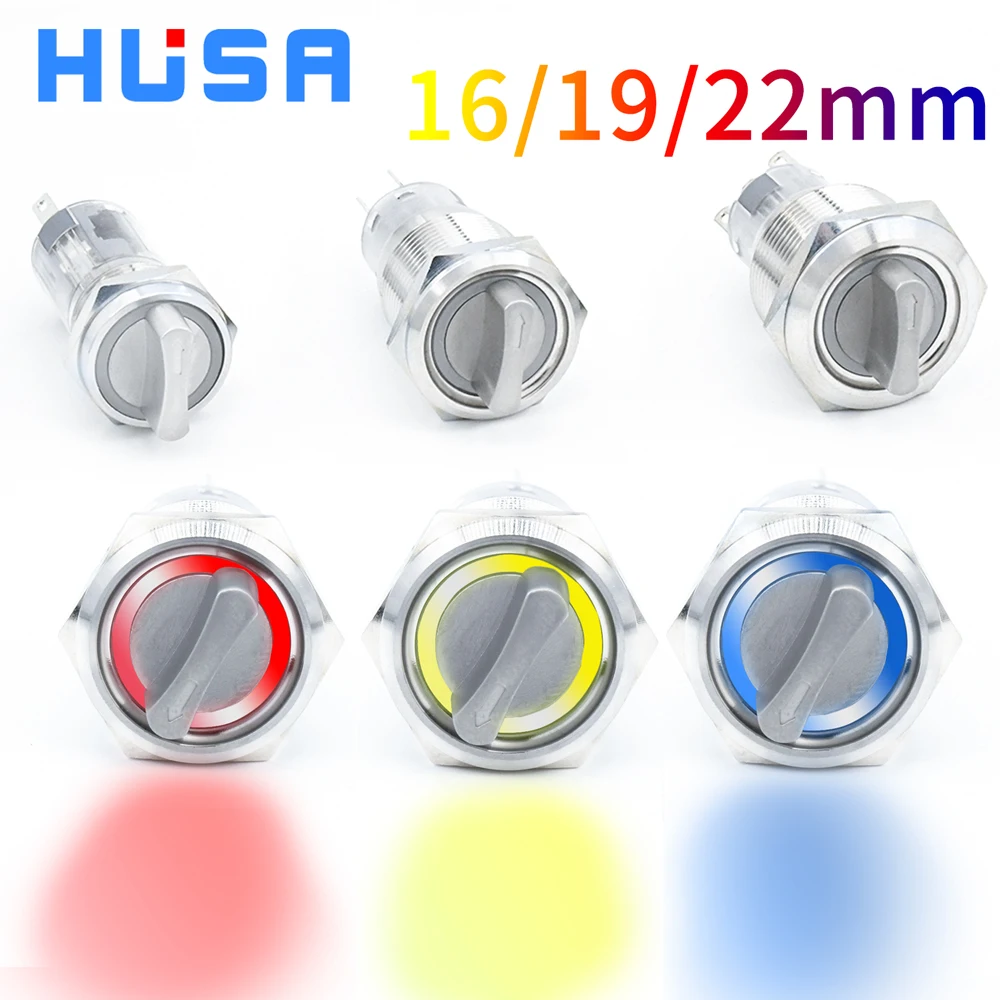 16 19 22mm Push Button Switch Metal Rotary 2/3 position self-locking self-reset retaining type with LED NO NC red blue green