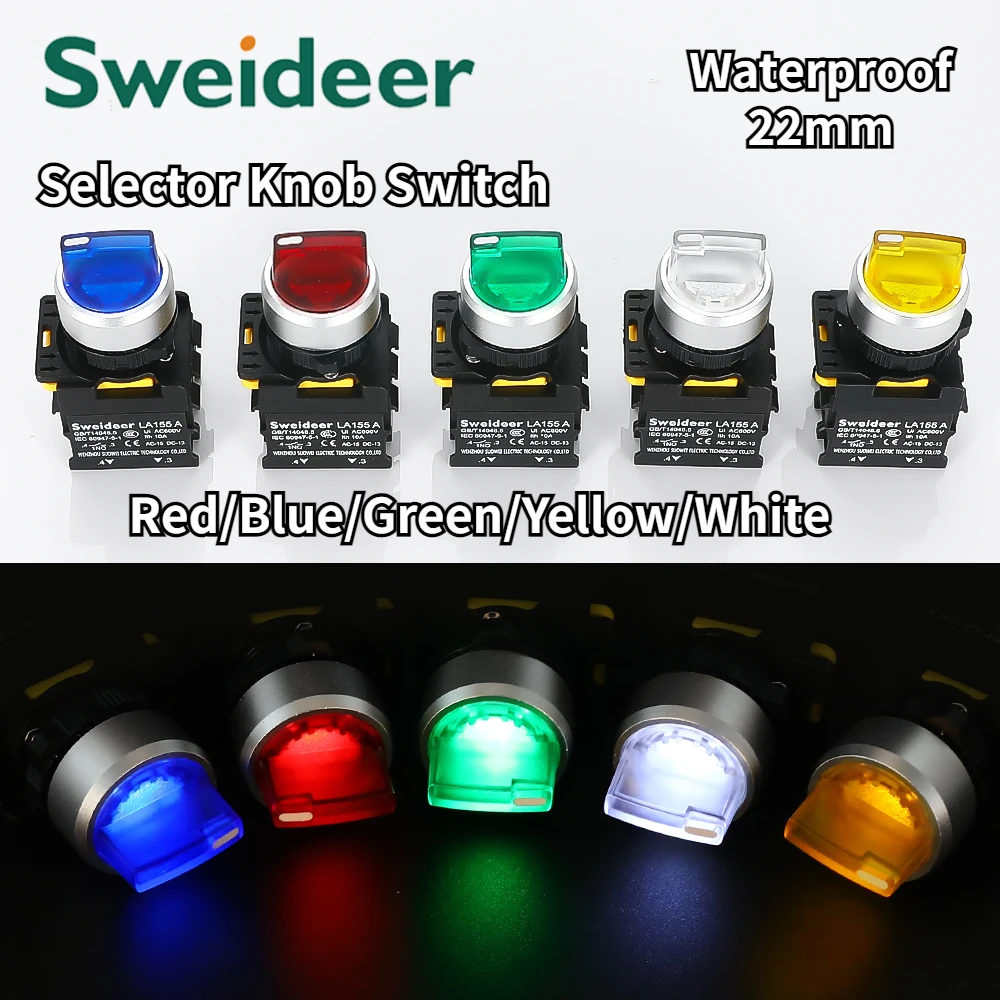Selector Knob Switch LED 22mm 1NO/2NO/1NO1NC 2/3 Position Self Locking Momentary Rotary on Off Switch with Light 12V 24V 220V10A