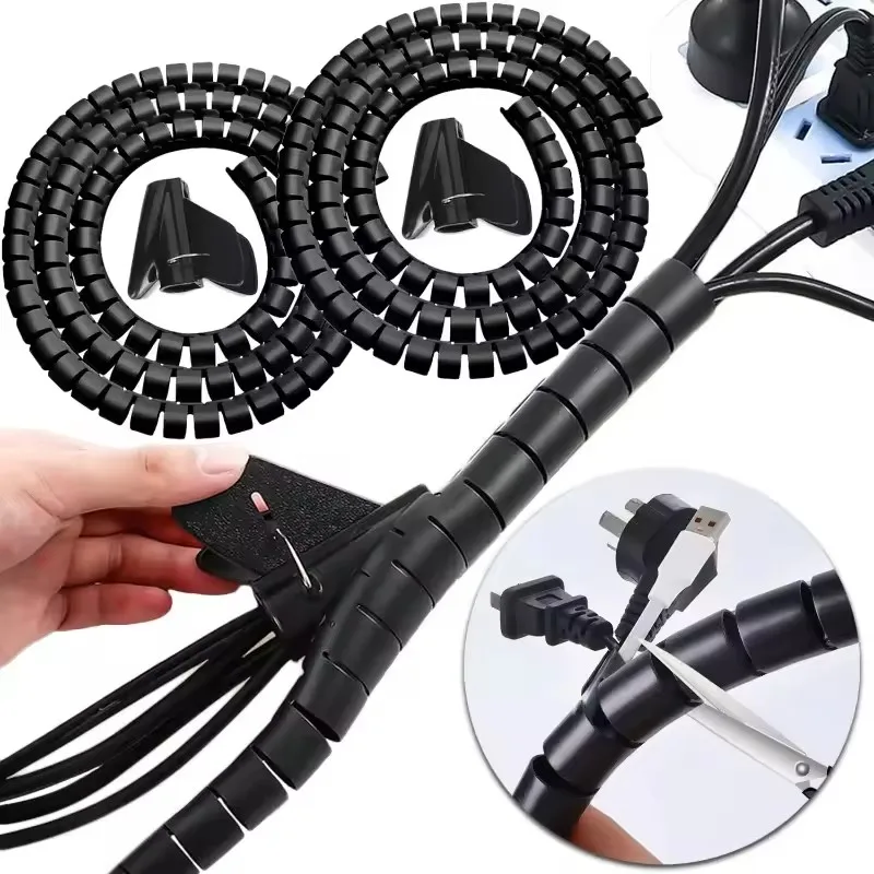 2M Cable Tube Sleeve Flexible Cord Bundler Wire Wrap Cable Management System Desk Wire Organizer for Office Home TV PC Computer