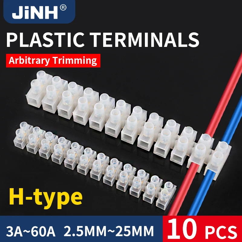 JINH 10Pcs H Type electric connector strip Wire connector Barrier Electirc Strip Block Terminal Plastic Screw terminal block  Read more