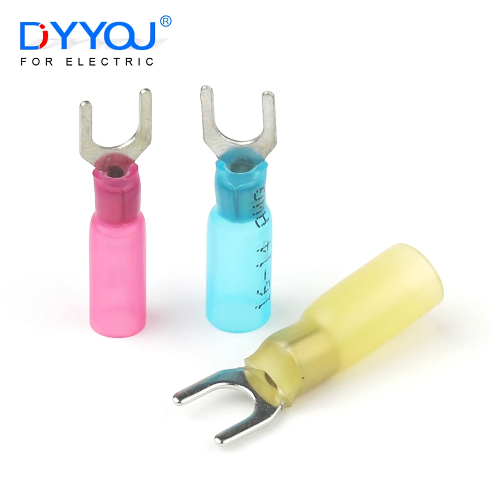 25PCS SV1.25/2/5.5 Crimp Electric Wiring Terminal Spade Fork Type Insulated Heat Shrink Cable Wire Connector Copper AWG 22-10
