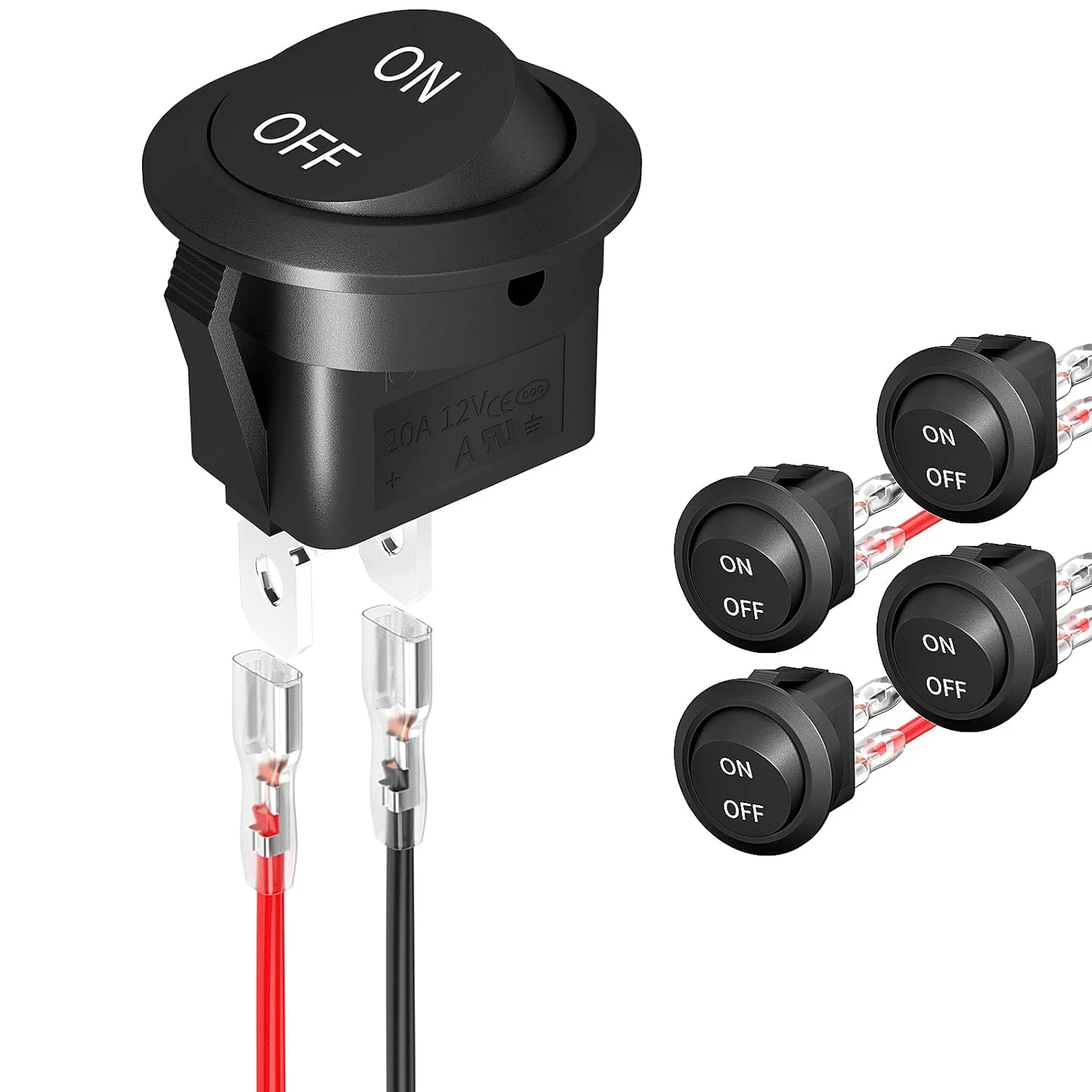 5pcs 12 Volt DC On Off Vehicle Round Rocker Switch AC 6A/250V 10A/125V SPST 2 Pin Small Auto Toggle Electric Switch with Wires