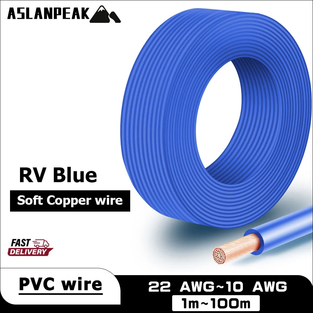 RV-Blue 22-10AWG 1-100m PVC solid copper wire electric extension 12v Electronic Cables audio speakers led for car 10 12 14 awg  Read more