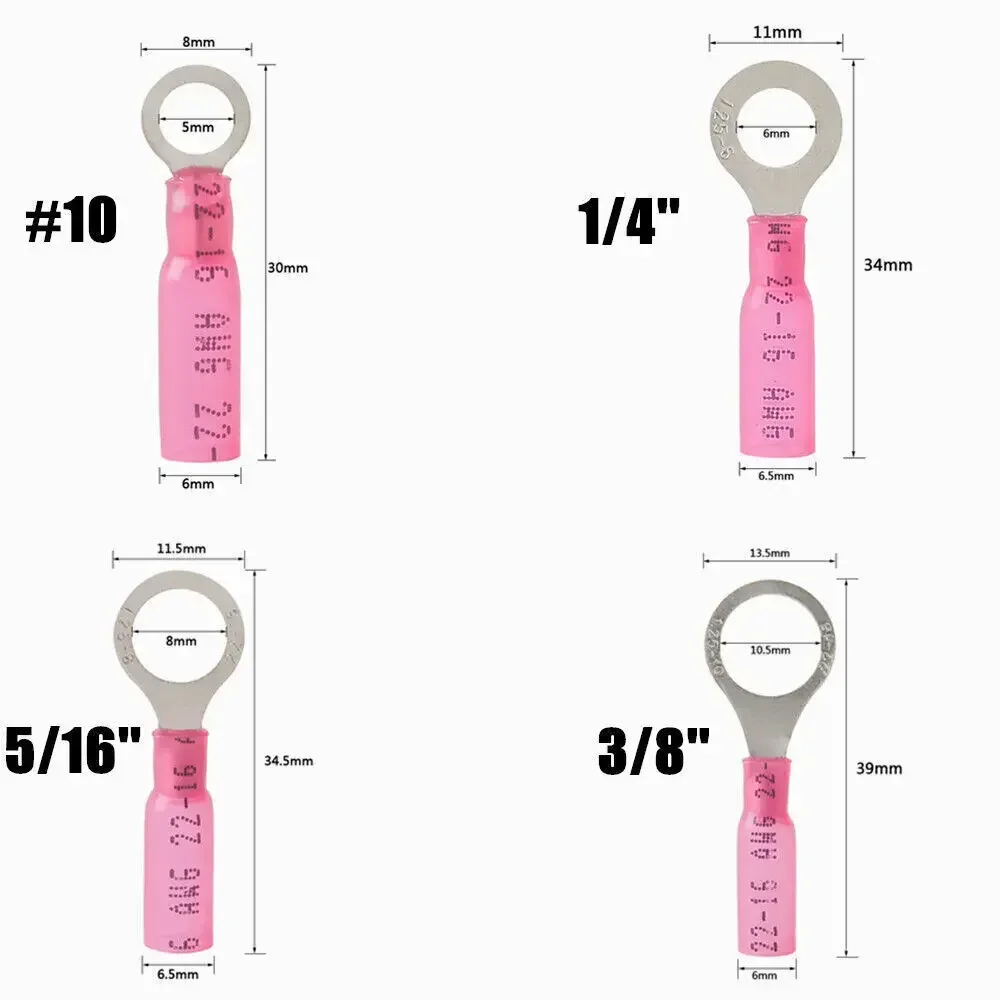 10/20PCS 22-16AWG Red Heat Shrink Insulated Waterproof Ring Connector Electrical Wiring Crimp Terminals