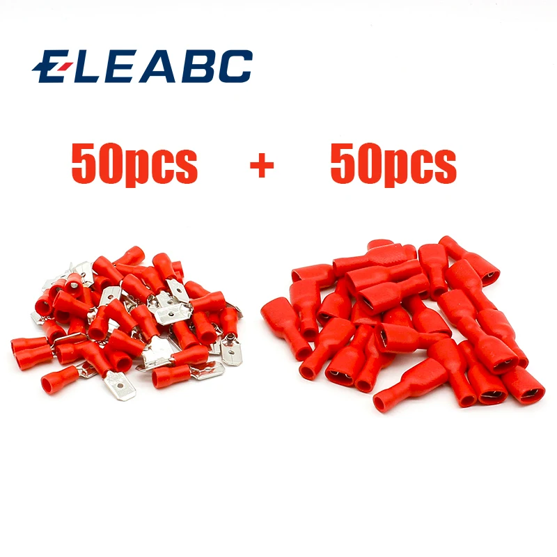 100pcs Red Spade Crimp Terminals Fully Insulated Electrical Connectors Audio Wiring