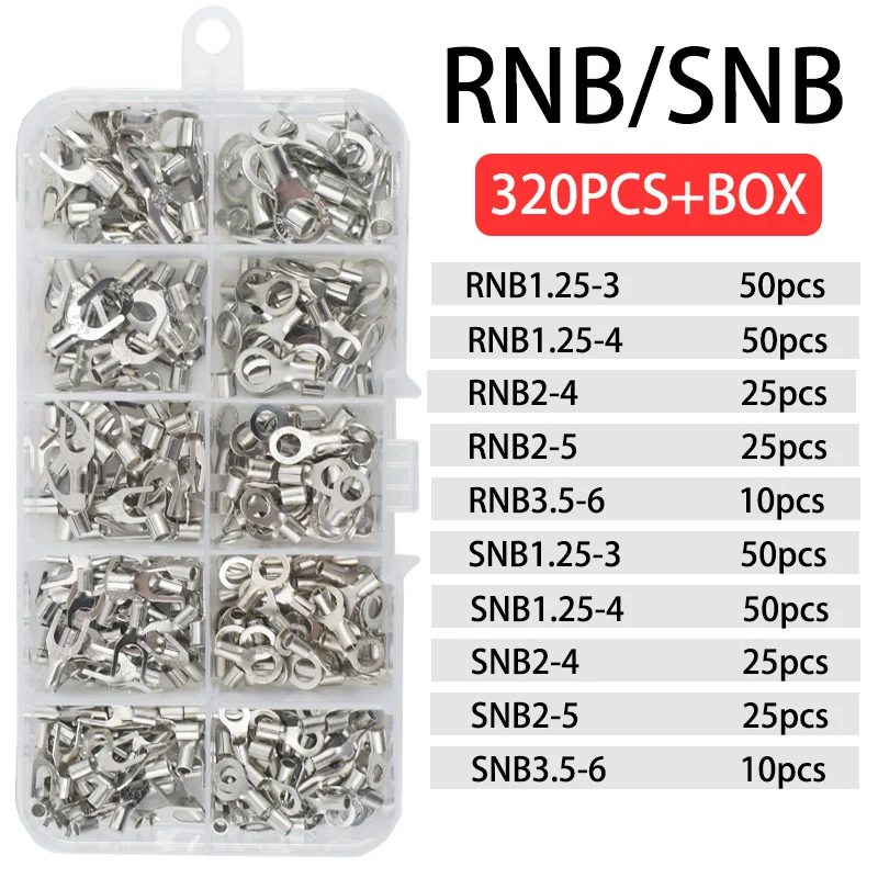 320Pcs/Box 10 In 1 Terminals Non-Insulated Ring Fork U-type Brass Terminals Assortment Kit Cable Wire Connector Crimp Spade  Read more