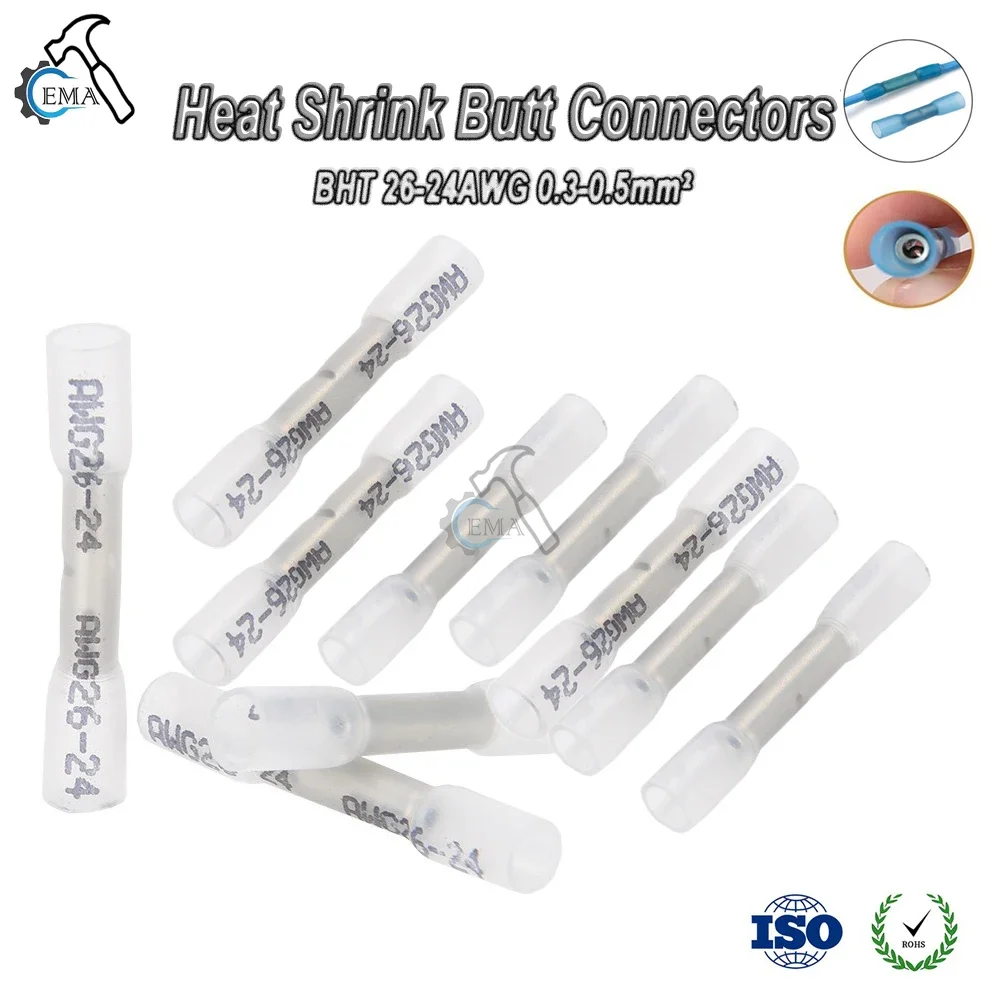 25/50/100PCS White Heat Shrink Butt Terminals Insulated Electrical Wire Connectors 26-24 AWG Cable Crimping Terminals Connector  Read more