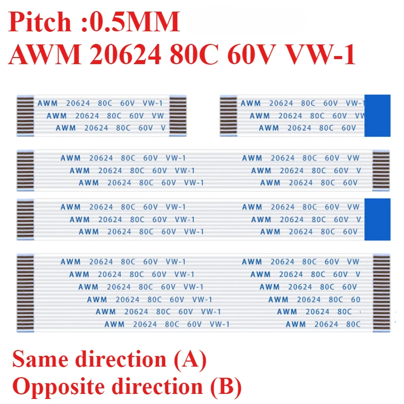 10PCS Flat Flexible Cable FFC FPC AWM 20624 80C 60V VW-1 100/150/200mm 0.5MM 1.0MM 4/6/8/10/12/14/16/18/20/24/26/30/40/50/60 Pin