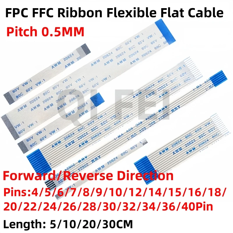 10Pcs 4Pin 5/6/7/8/9/10/15/20/30/40 Pin FFC FPC AWM 20624 80C 60V VW-1 0.5mm 1mm Pitch Flat Flexible Cable 5/10/15/20/25/30/40cm  Read more