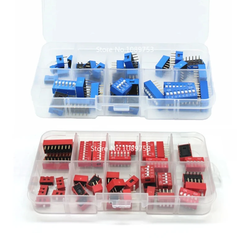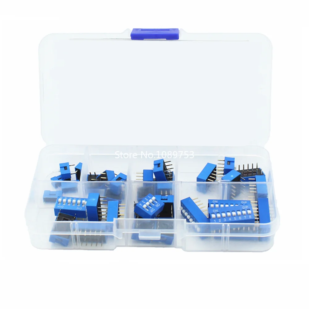 35PCS/LOT Dip Switch Kit In Box 1 2 3 4 5 6 8 Way 2.54mm Toggle Switch Snap Switches Mixed Kit Each 5PCS Combination Set