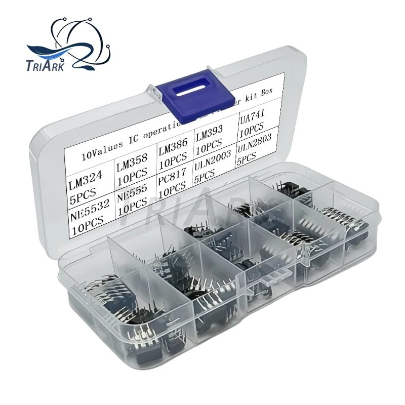 85PCS 10 Types NE555 LM324 LM393 UA741 ULN2803 LM358 LM386 NE5532 ULN2003 PC817C Integrated Circuit DIP IC Combination Chip Kit