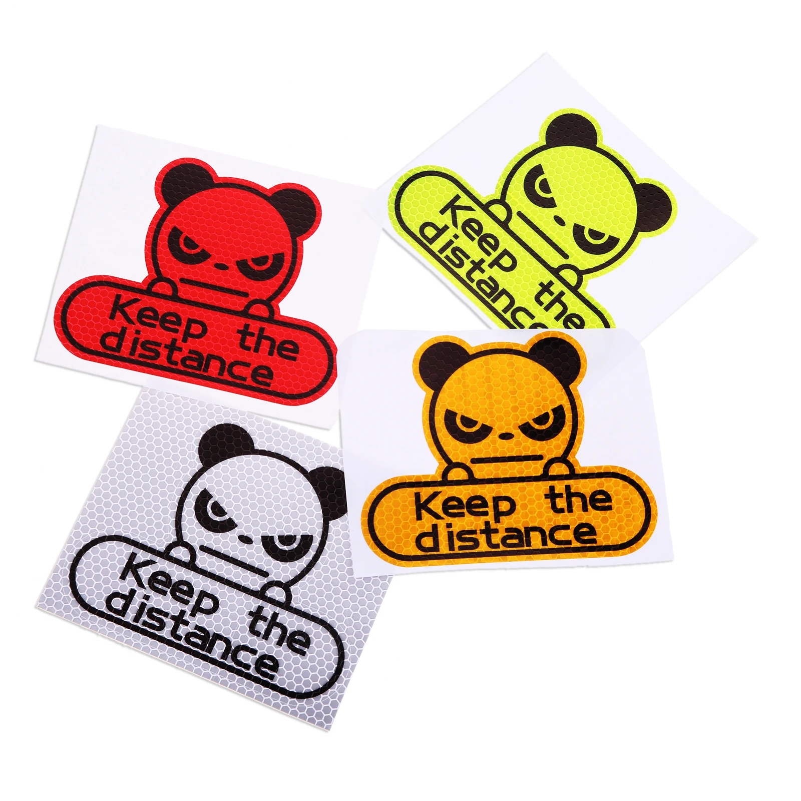 1Pc Car Stickers Keep The Distance Reflective Stickers Fluorescent Yellow Green Red Grey Hexagon Honeycomb Cartoon Panda Sticker