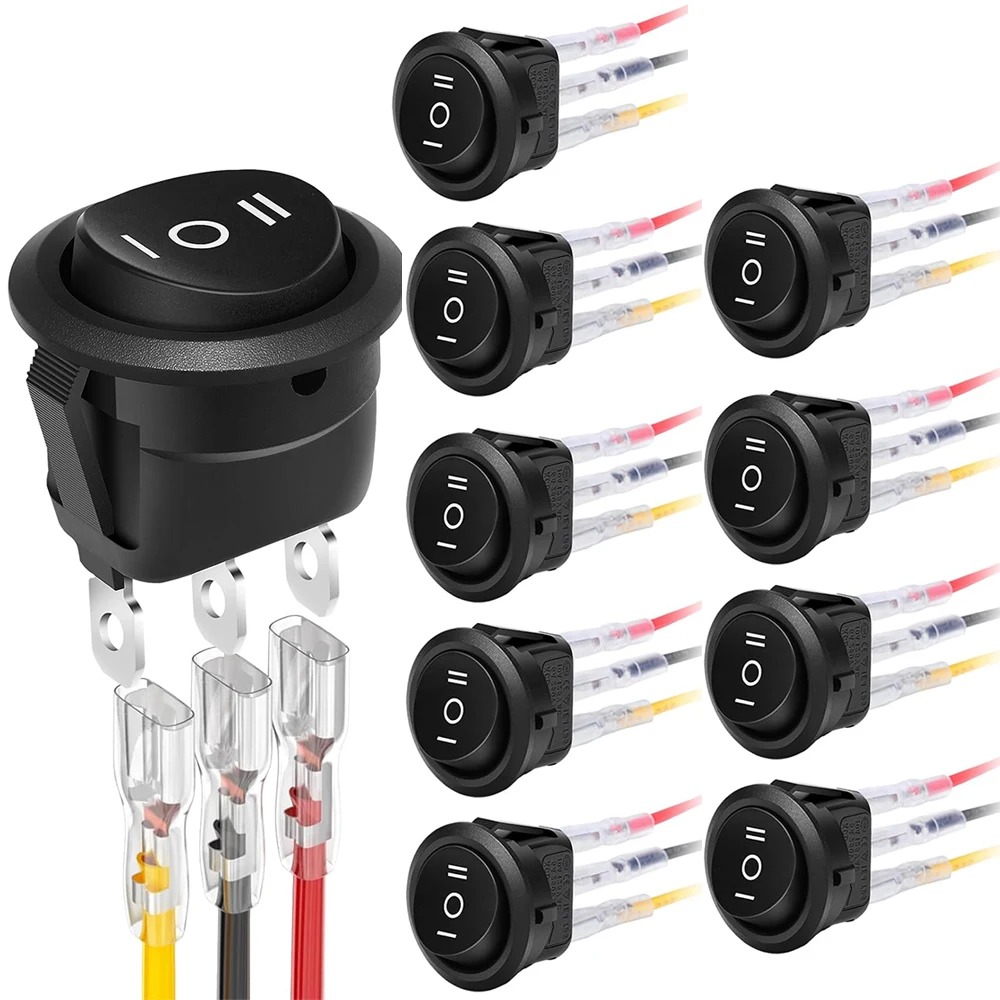 5pcs 12 Volt 3 Way Round Rocker Switch 3 Position ON/Off/ON Rocker Switch 3 Pin 6A/250V AC 10A/125V DC SPST Circle Toggle Switch