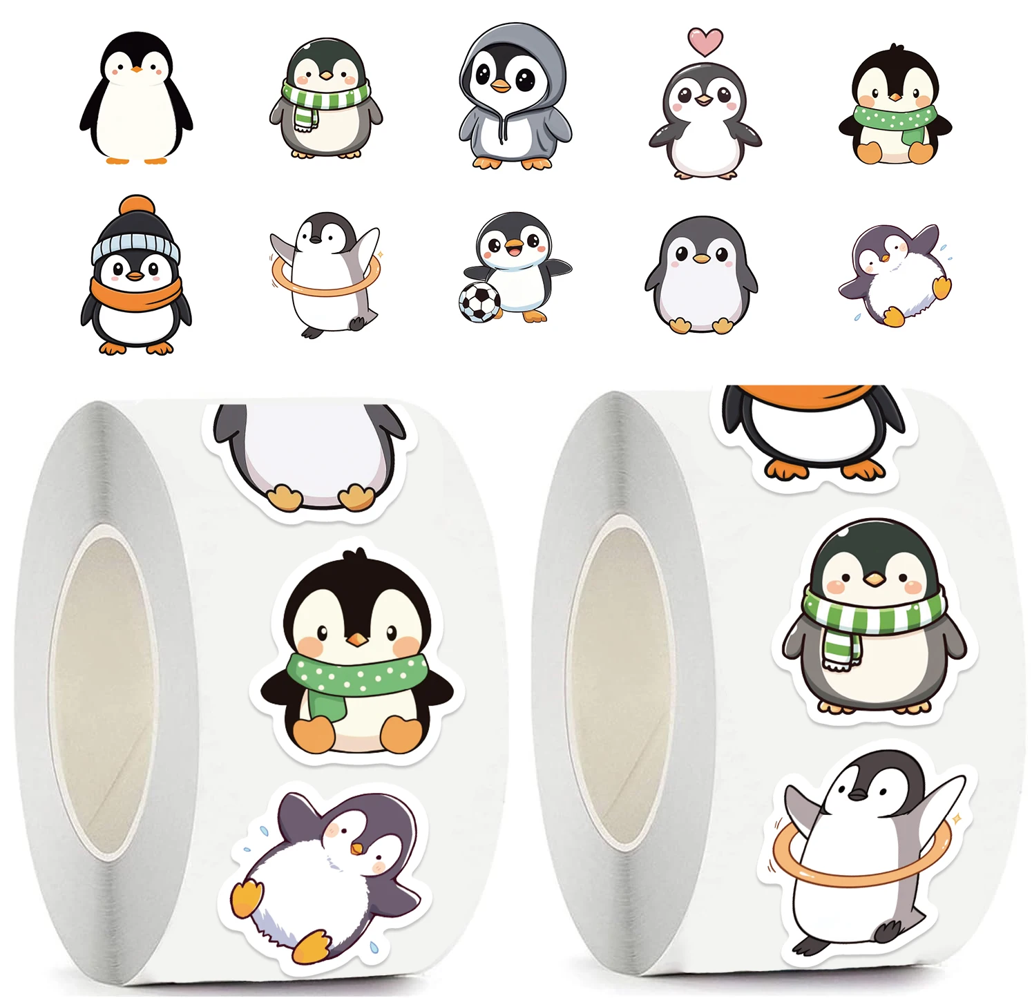 500pcs Penguin Sticker Roll Waterproof PVC Self-Adhesive Decals with Cute Animal Themed Designs for Laptops Scrapbooks Phones