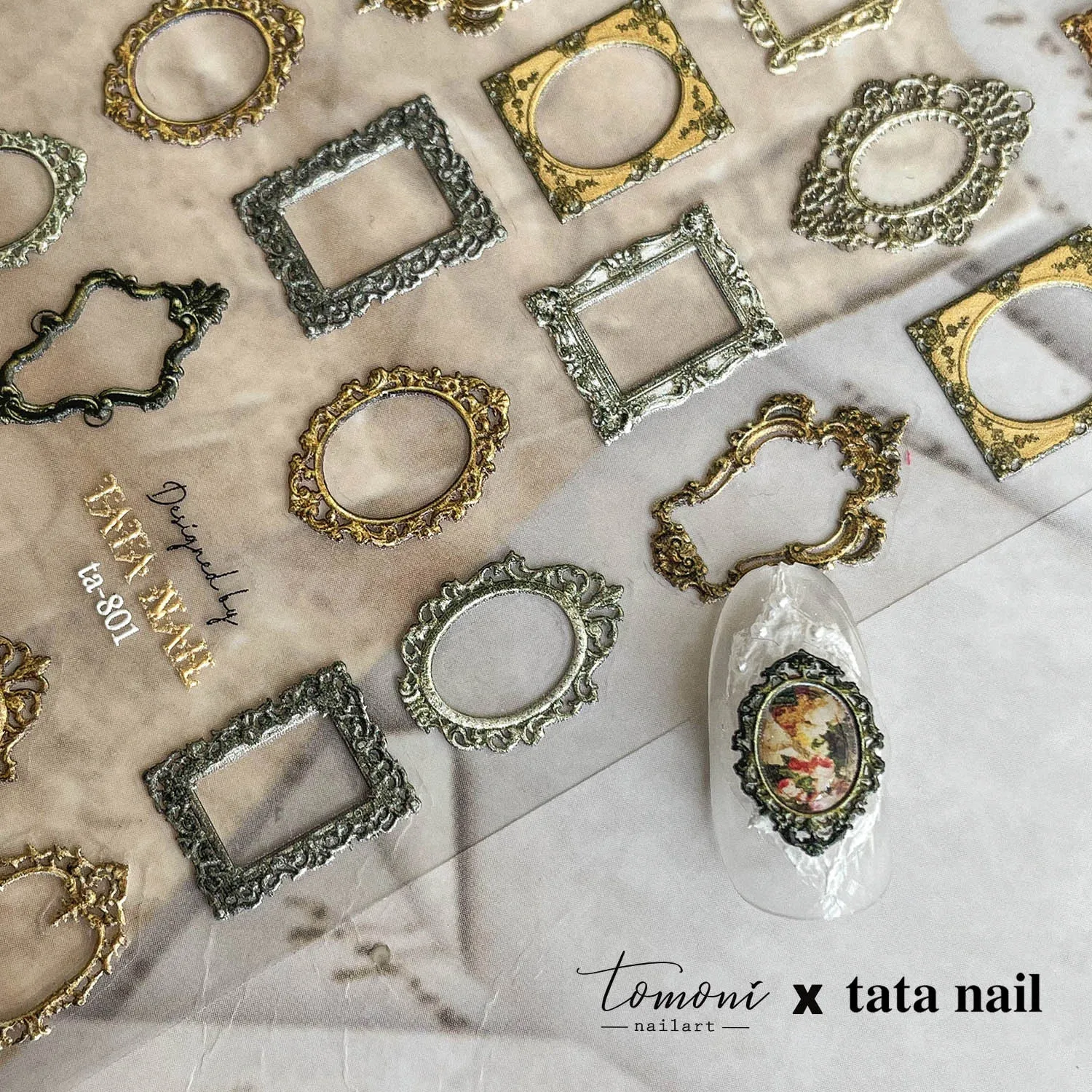 Vintage Photo Frame Border Boho 5D Soft Embossed Reliefs Self Adhesive Nail Art Decorations Stickers 3D Nail Decals Wholesale