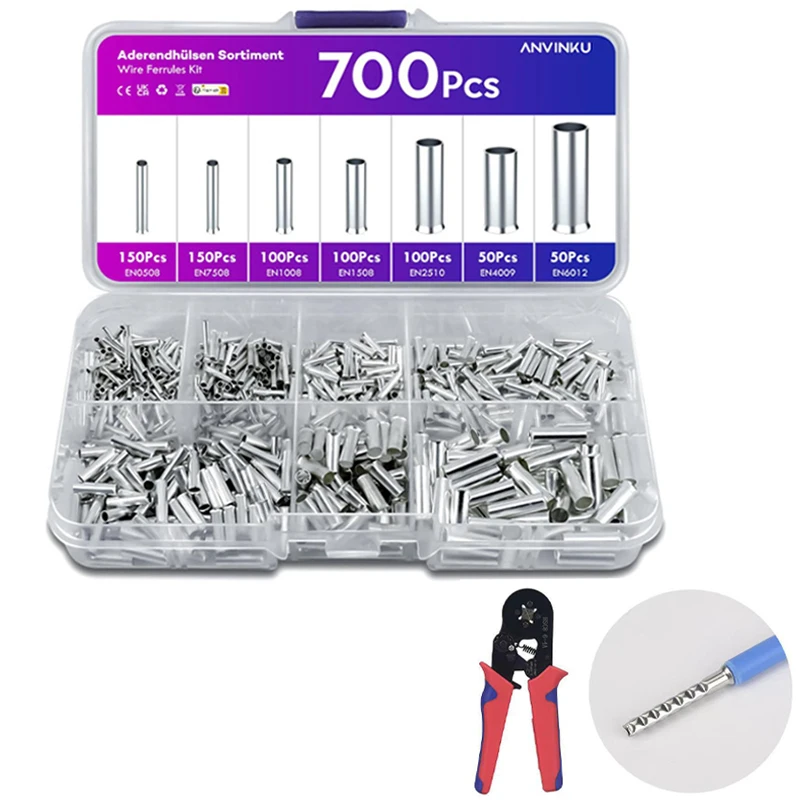 600/700pcs Bare Terminal Tubular Wire End Ferrules Mix Size Uninsulated Cable Sleeves Simple for Wire Connection Pin Crimp  Read more