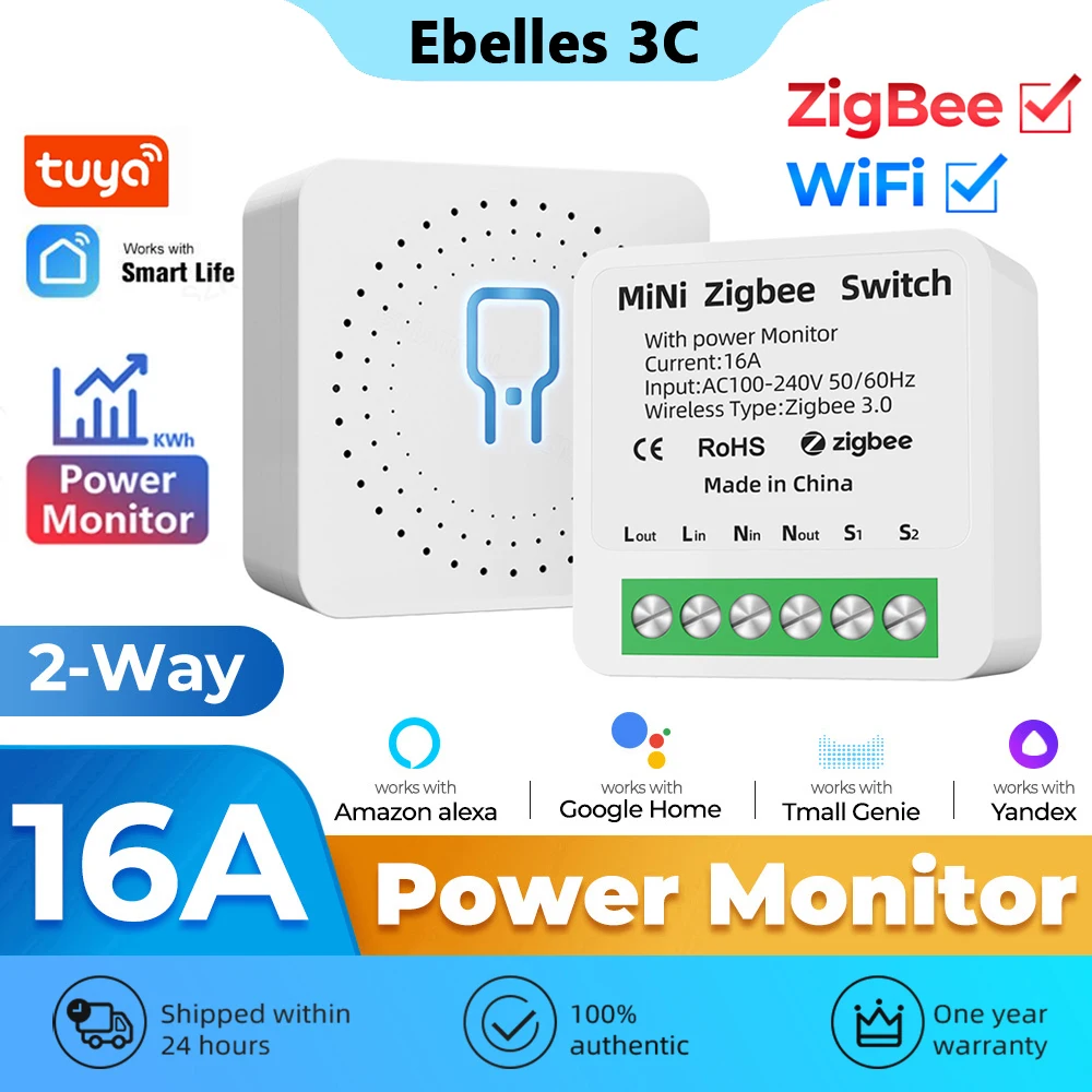 Tuya Zigbee / WiFi MiNi Smart Switch With Power Monitor 16A 2-way Control Timer Breaker Relay Work With Alexa Google Home Alice  Read more