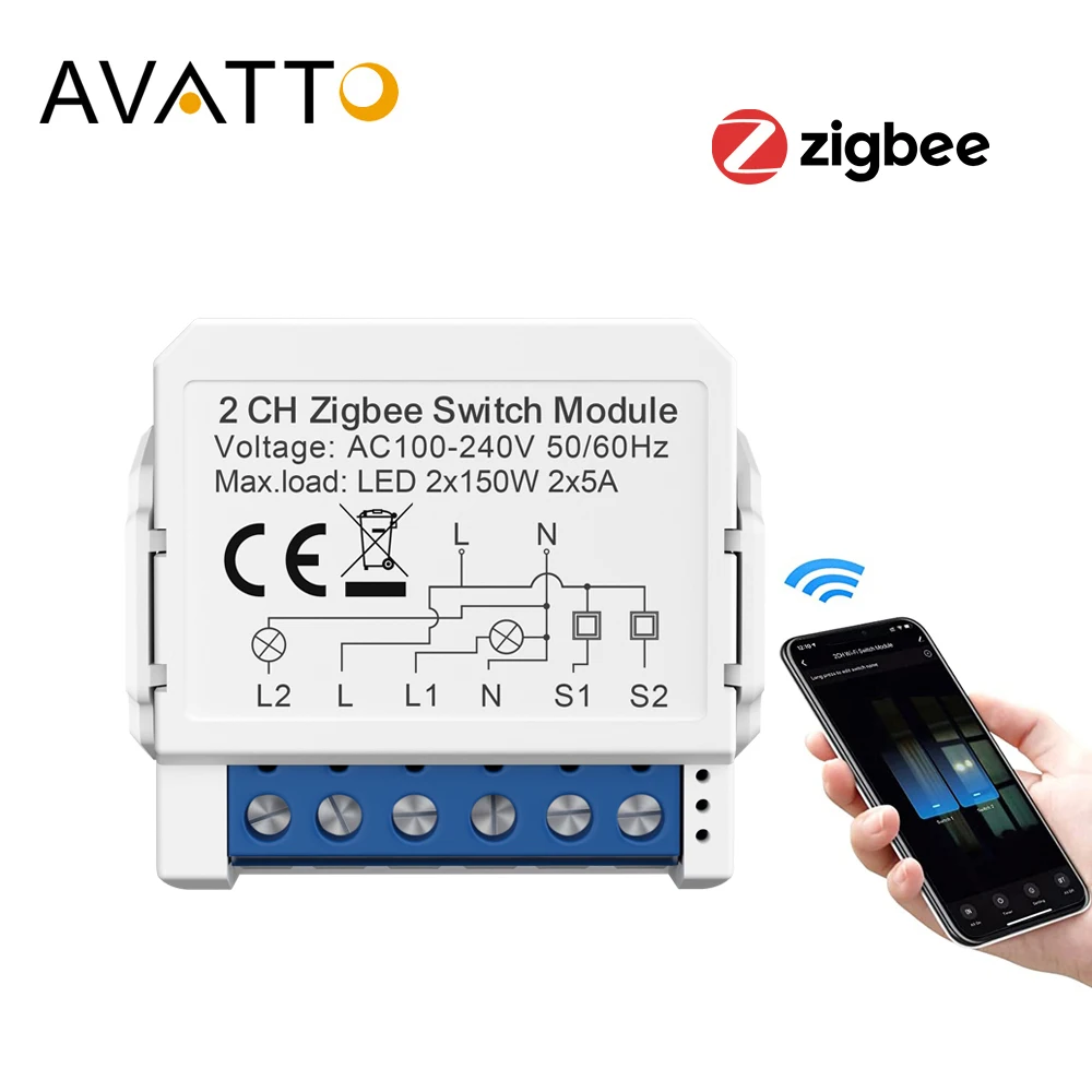 AVATTO Tuya Smart Zigbee Switch Module 2 Way Control, Smart Home 1/2/3/4 Gang Automation DIY Breaker Work for Alexa Google Home