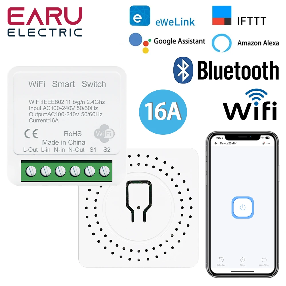 Tuya eWeLink WiFi ZigBee 16A 2 Way DIY Mini WiFi Smart Switch Breaker Module Timer Relay Voice Wireless Remote Control for Alexa
