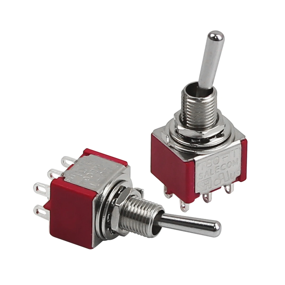 FLEOR 2PCS Red 2-way Mini Guitar Toggle Switch DPDT Type 2-Position ON/ON 3A 250V AC / 5A 125V AC