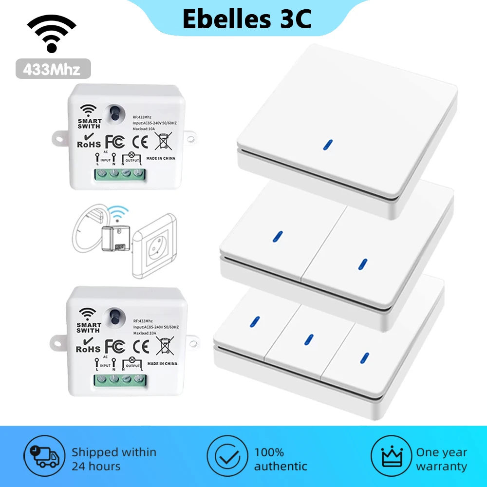 Wireless ON OFF Switch RF433 Module Remote Control Light Switch 1/2/3 Gang Wall Switch for Light Bulb Chandelier 10A 110V 220V  Read more