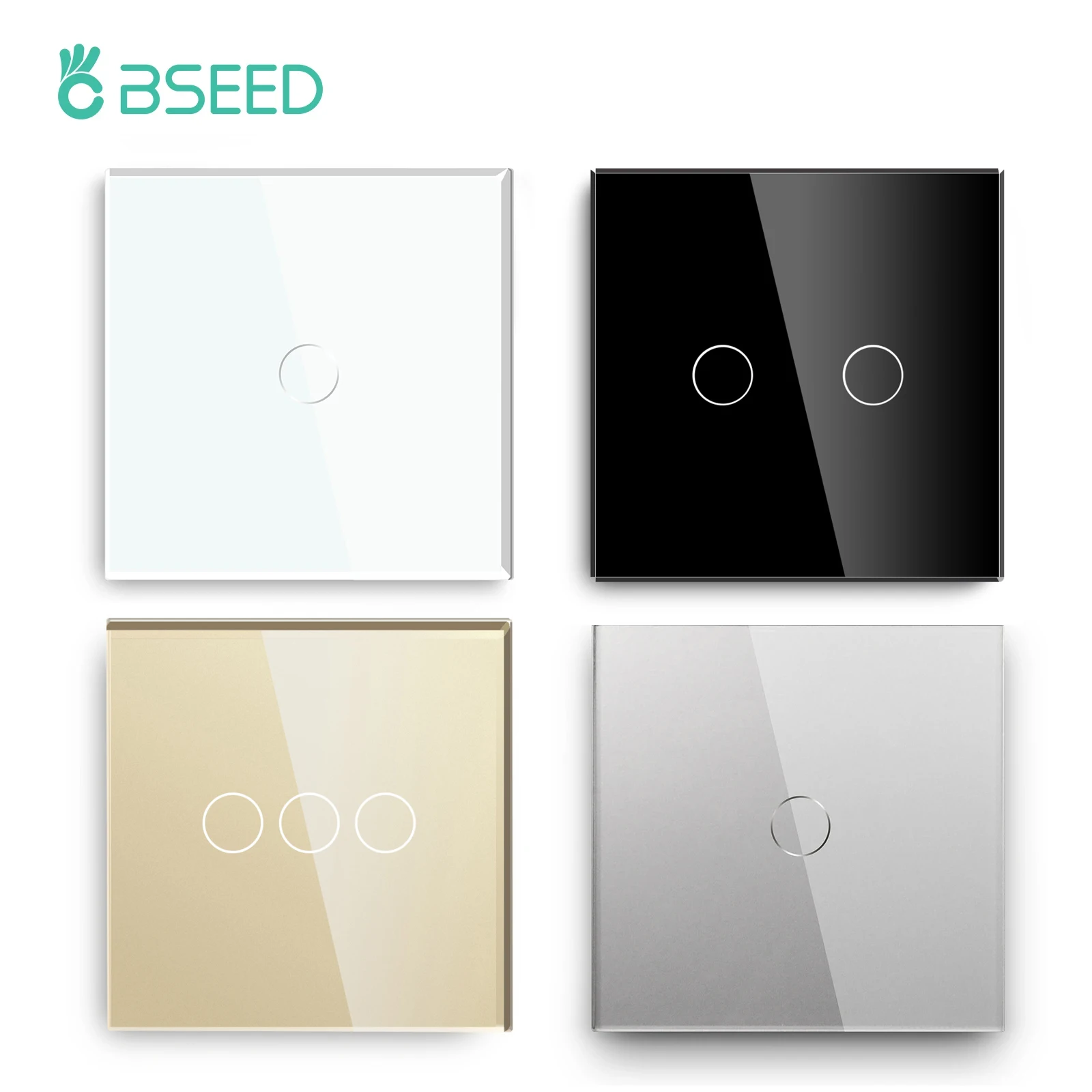 Bseed Touch Light Switch 1/2/3 Gang 1/2 Way Intermediate Stair Switch EU Power Sensor Switches Black White With Glass Panel