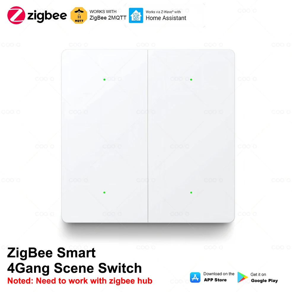 Zigbee Smart Scene Switch Button 4 Gang Wireless Wall Push Button Switch Controller Smart Home Automation Scenario Switch  Read more