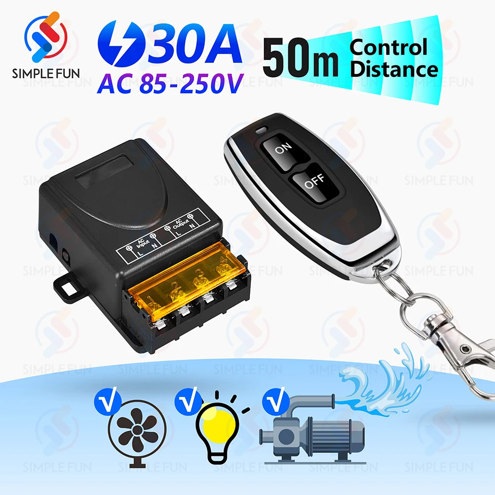 Wireless Remote Control Switch 433Mhz 110V 220V 230V 30A , 50m ON/OFF Transmitter, High Power Relay Module, for Pump Lamp Fan DIY  Read more