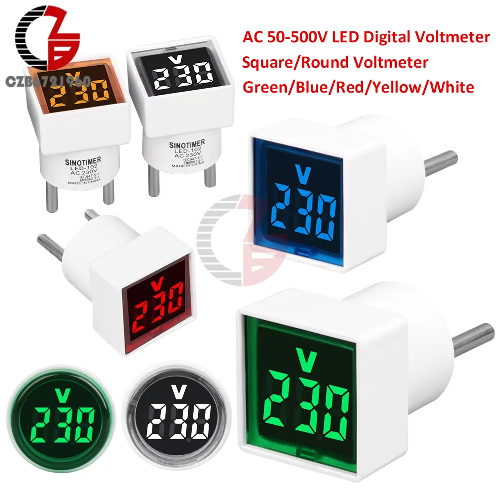 Square Voltmeter Digital Voltage Tester Monitor EU Plug LED Display Voltmeter Indicator Light Electrical Instruments AC 50V-500V  Read more