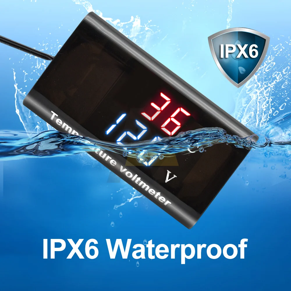 Digital Temperature Voltmeter DC 12V 0.56inch LED Display Voltage Meter Tester Waterproof Panel for Car Boat Motorcycle