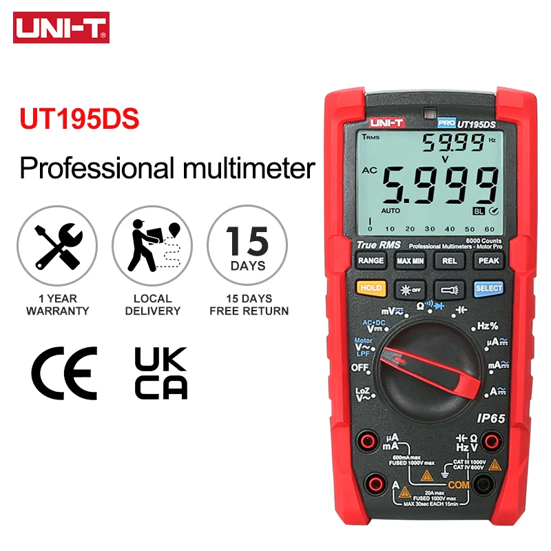 UNI-T UT195DS Industrial Digital Multimeter Professional Tester Waterproof IP65 Flashlight AC DC LOZ Motor Phase Voltage Test  Read more