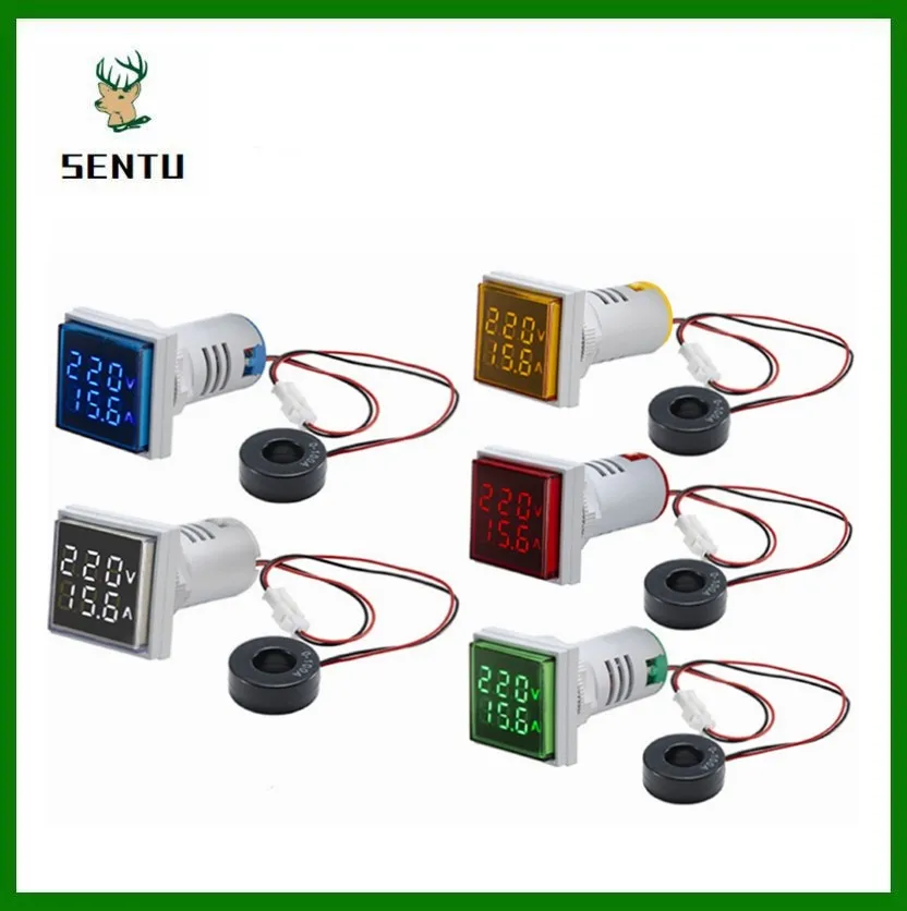 Square LED Digital Voltmeter Ammeter Hertz Meter AC 20-500V Signal Lights Voltage Current Frequency Combo Meter Indicator Tester