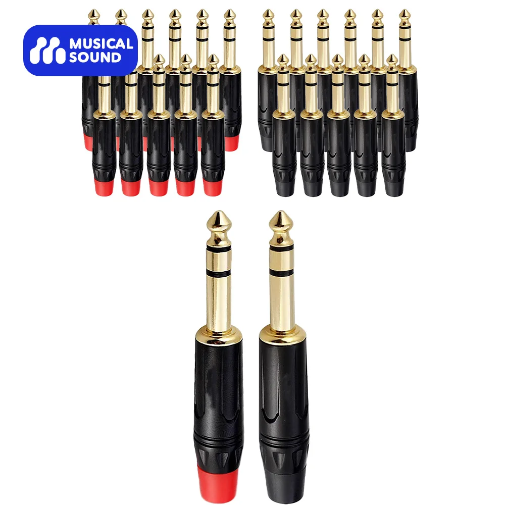 Musical Sound Gold-Planted 6.35mm TRS Solder Type DIY Audio Connector 1/4/24/50 Pieces 1/4 inch 1/4" 6.35mm Male Solder Adapter