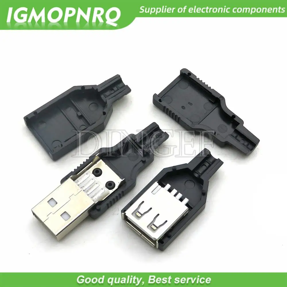 10pcs Type A Male Female USB 4 Pin Plug Socket Connector With Black Plastic Cover Type-A DIY Kits  Read more