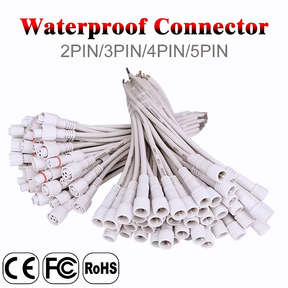 Waterproof LED Connectors IP68 DC Male and Female 2-Pin 3-Pin 4-Pin 5-Pin 20cm Black Transparent Cable 22 24AWG for Strip Lights  Read more